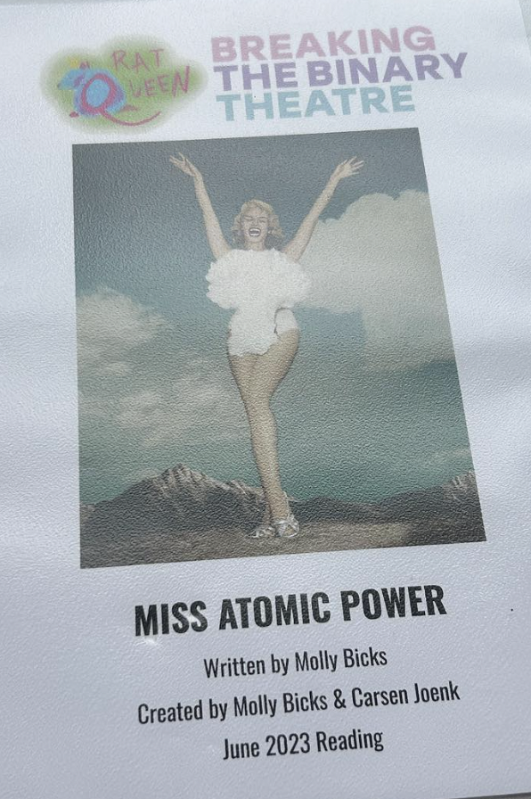 On Monday, June 5, 2023, we partnered with our new friends over at Rat Queen Theatre Co. to co-produce a reading of Molly Bicks’ MISS ATOMIC POWER as a part of our New Works Program.